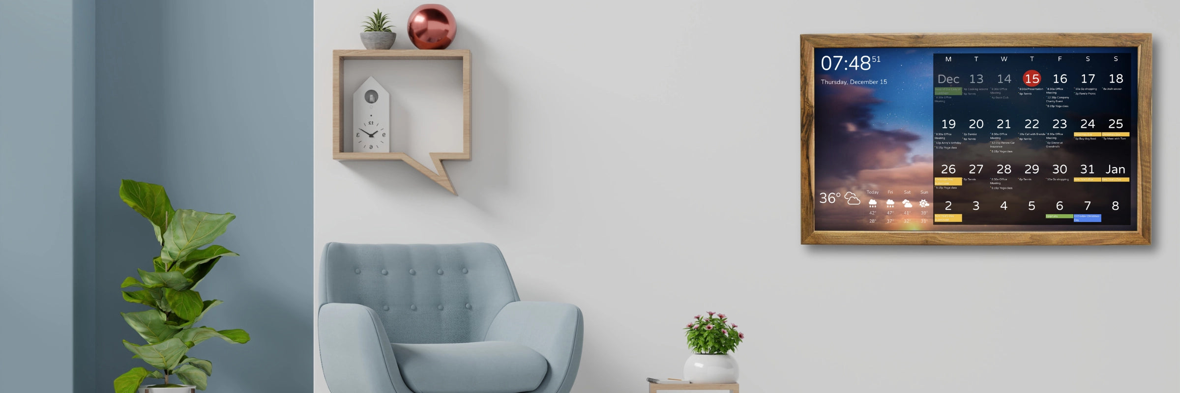 Optimieren Sie Ihren Alltag mit dem digitalen Wandkalender von SmartnMagic. Dieses anspruchsvolle Display wurde entwickelt, um Ihr Leben zu organisieren. Es verfügt über einen Dakboard-Kalender zur nahtlosen Verfolgung von Ereignissen und Terminen. Bleiben Sie mit Wetter-Updates in Echtzeit auf dem Laufenden und passen Sie Ihr Home-Dashboard so an, dass Sie Lichter, Thermostate und Sicherheitssysteme direkt von Ihrer Wand aus steuern können. Es ist das ultimative Werkzeug für die moderne Hausverwaltung.
